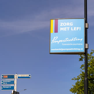 Steeds meer organisaties kiezen bewust voor langdurige aanwezigheid in de omgeving. Zo plaatste de Pompestichting lichtmastreclames met de boodschap “Zorg met lef!” langs drukke routes in Zeeland (Maashorst) en Nijmegen met onder andere vermelding van hun vacaturepagina: werkenbijpompestichting.nl. Nina van de Worp van de Pompestichting: “Ons lichtmastbord hangt in Zeeland (Noord-Brabant) – en dat blijft de komende vijf jaar zo! Met deze langdurige zichtbaarheid laten we zien dat de Pompestichting niet alleen kiest voor de korte klap, maar juist investeert in duurzame naamsbekendheid en een sterk werkgeversmerk. Iedereen die hier dagelijks langsrijdt, kan niet om onze boodschap “Zorg met lef!” heen. Dit bord staat symbool voor onze ambitie om forensische psychiatrie én het werken bij de Pompestichting blijvend op de kaart te zetten.”